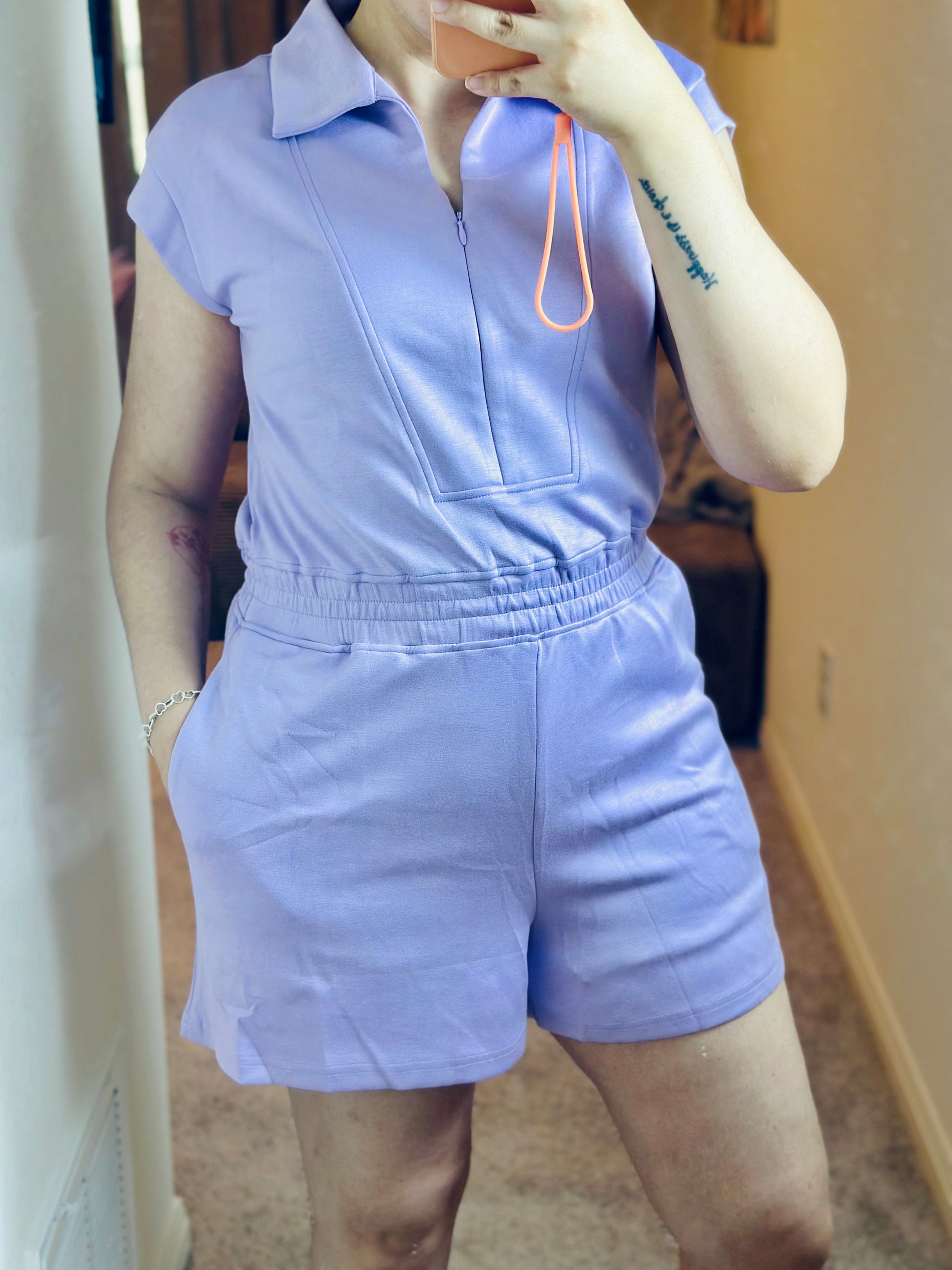 Orchid Bouquet Short Sleeve Zipper Collared Elastic High Waist Romper